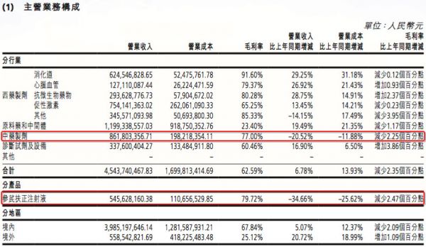 从主营业务构成我们可以看到,中药制剂和参芪扶正注射液营业收入下降明显,尤其是作为其主打产品的参芪扶正注射液,2018年上半年营业收入下降34.66%。