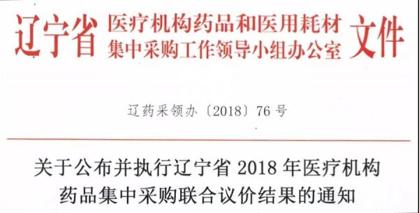 昨日(9月3日),辽宁省药品和医用耗材集中采购网发布《关于公布并执行辽宁省2018年医疗机构药品集中采购联合议价结果的通知》。