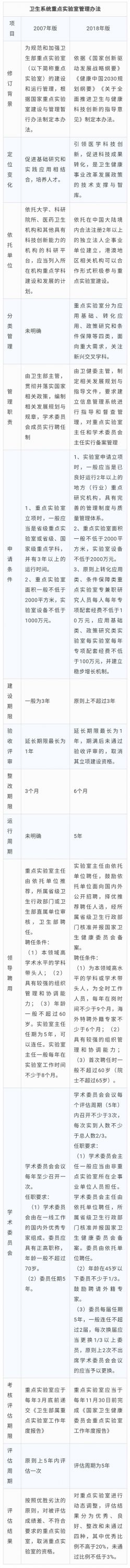 要知道,现行的关于重点实验室建设管理的规定还是2007年原卫生部发布的《卫生部重点实验室管理办法》和《卫生部重点实验室评估规则》,如今11年已过去,新的文件规定有了大升级。