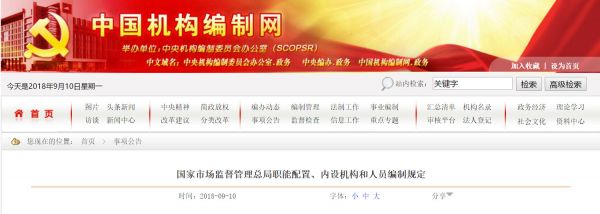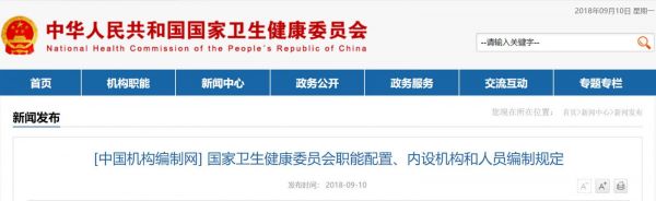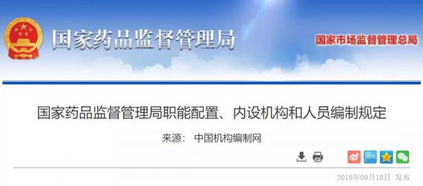 9月10日,中国机构编制网发布了国家药监局、卫健委、市场监管总局的三定方案。