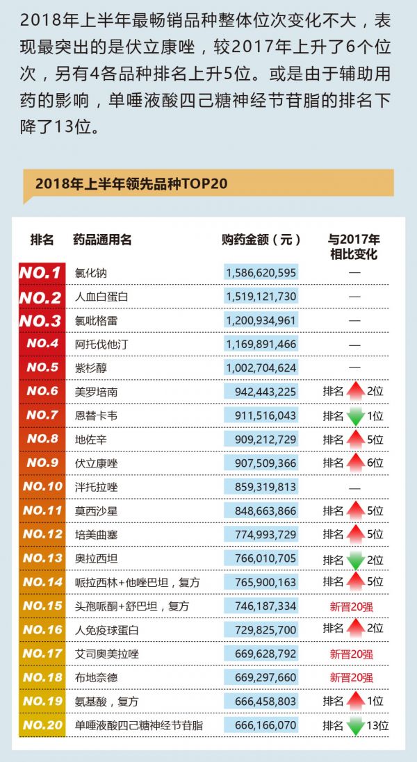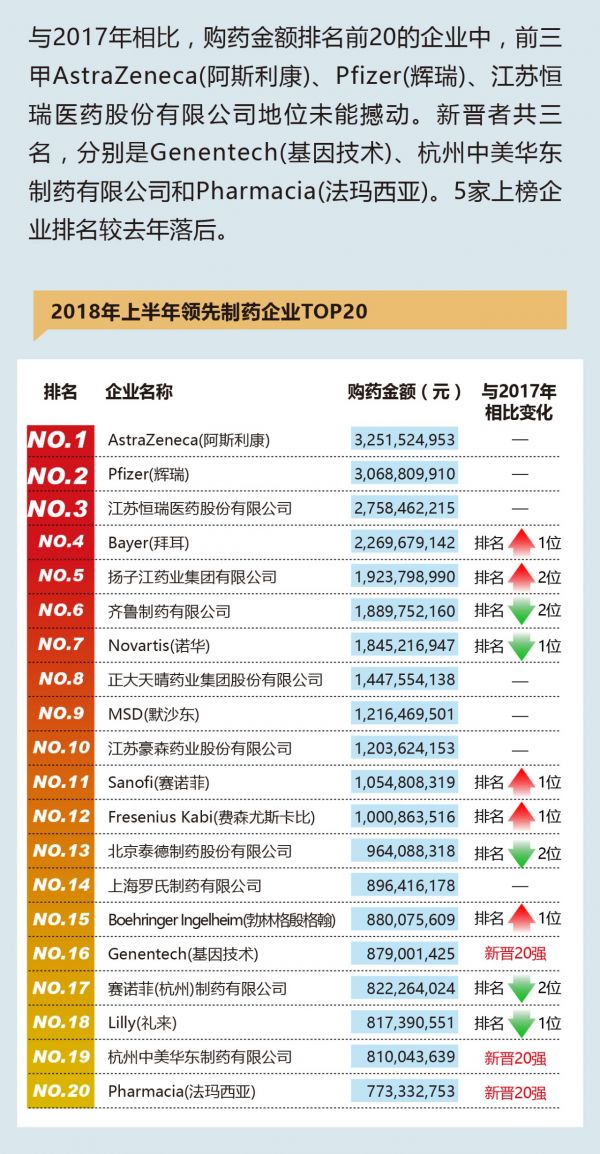 全国公立医院药品销售20强:AZ、辉瑞、恒瑞、拜耳、扬子江…