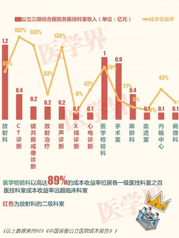 在绝大多数人的眼里,临床科室应该承担着为医院“创收”的重任。然而根据相关报告,医药“最赚钱”的两个科室为检验科和放射科,均为医技科室。
