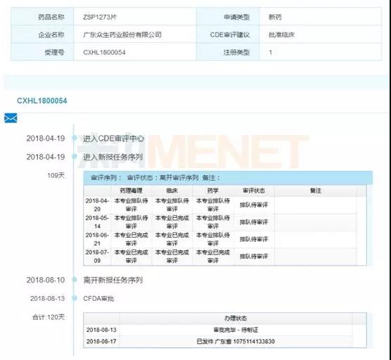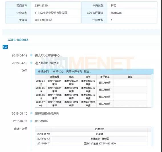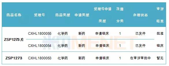 表1:众生药业ZSP1273相关产品的审评情况