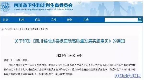 根据相关数据,四川省有超过151家县级医院。也就是说,随着这么多的县级医院对专科科室的建设,医院对相关的医疗设备的需求也将达到新的高峰。