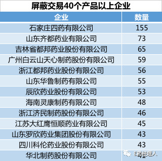 值得注意的是,尽管被屏蔽交易的1000余家企业中绝大部分是一些名不见经传的小公司,但跨国药企TOP20的外资公司,以及本土医药企业里面的龙头企业,同样并不鲜见,例如大输液领域被屏蔽交易的公司就有超过40家,基本囊括了这一细分领域的所有龙头企业。