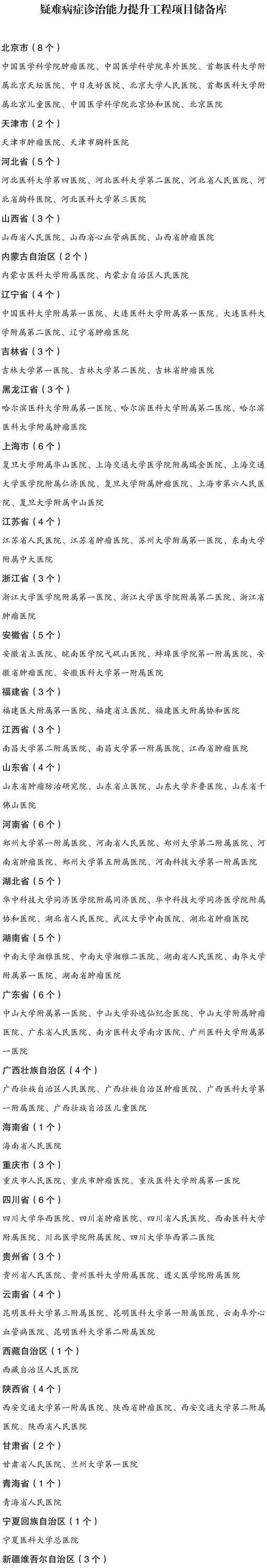 2018年4月份,国家卫健委印发《疑难病症诊治能力提升工程项目储备库的通知》。