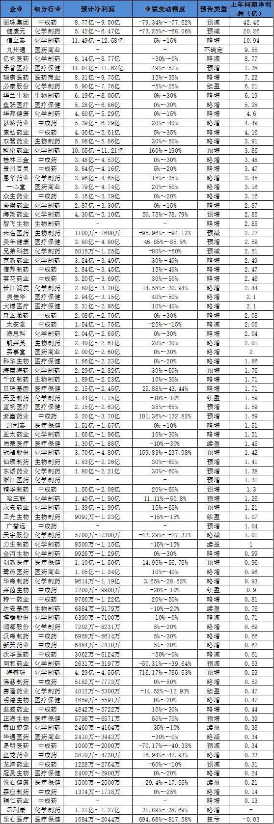 附:88家盈利药企业绩概况