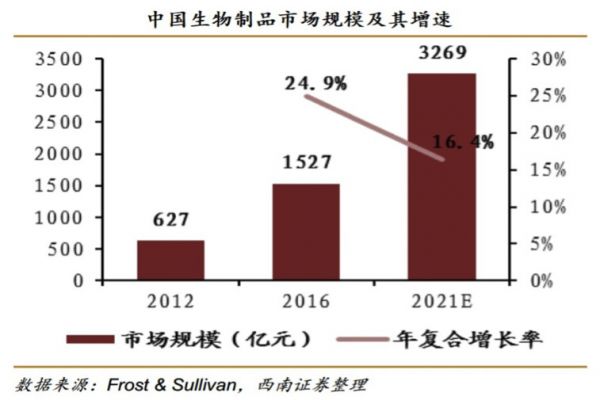 生物制品发展迅速,2021年市场规模或近3300亿元