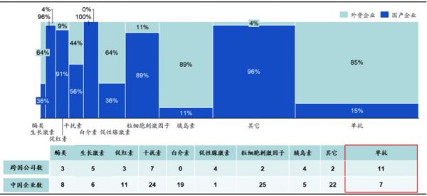 此外,胰岛素也具有较为广阔的市场空间。国产企业的份额仅占11%,进口企业占比近90%,但增速不如单抗迅猛。