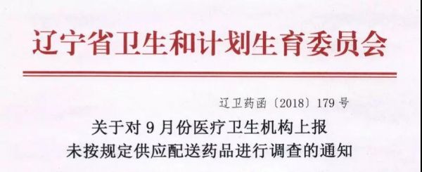 昨日(10月9日),辽宁省药品和医用耗材集中采购网发布《关于对9月份医疗卫生机构上报未按规定供应配送药品进行调查的通知》,有15个药品未按规定配送将被调查。