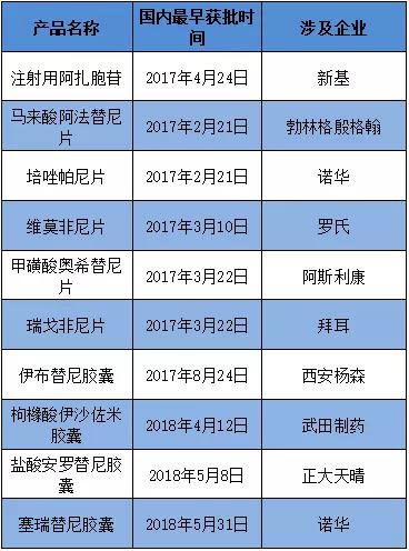 其中,注射用醋酸奥曲肽微球和尼洛替尼胶囊都是在华上市至少十年的产品,而塞瑞替尼胶囊以及培唑帕尼片都是近两年在中国上市的新品。此外诺华入选的4个药品,目前在国内市场都尚无同类竞品。