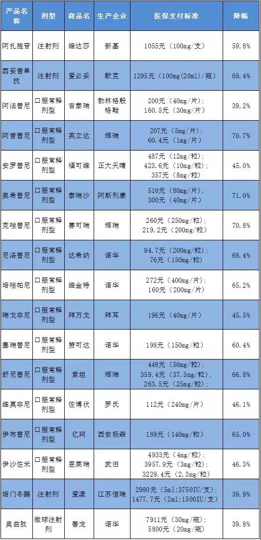 包括12个实体肿瘤药和5个血液肿瘤药,均为临床必需、疗效确切、参保人员需求迫切的肿瘤治疗药品,涉及非小细胞肺癌、肾癌、结直肠癌、黑色素瘤、淋巴瘤等多个癌种。