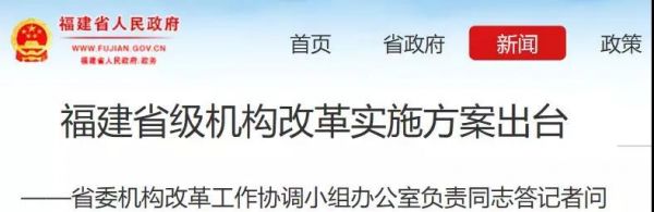 日前,福建省政府官网公布,《福建省省级机构改革实施方案》已经印发(以下简称《实施方案》)。
