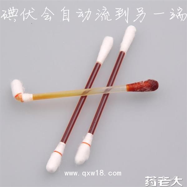 消毒棉棒是由两端绕有医用脱脂棉的管状棒组成,管内充填一定量的消毒剂,其一端热熔封口,一端液封。本品的有效成分为聚维酮碘。