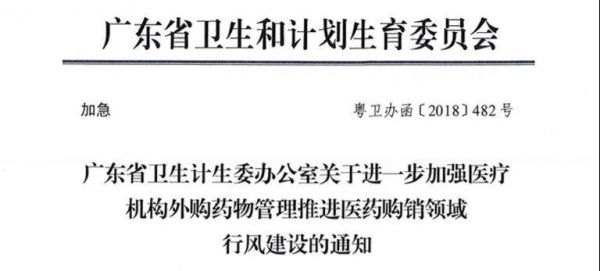 近日,笔者于广东医院方面人士获悉,广东省卫计委下发了《关于进一步加强医疗机构外购药物管理推进医药购销领域行风建设的通知》,目的是进一步规范临床用药,对院外处方进行规范。