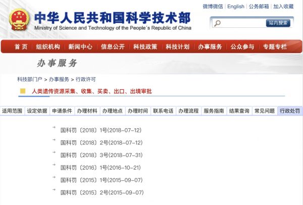10月24日,国家科技部官网公开了六份行政处罚书,处罚书显示的时间分别是2015年9月7日、2016年10月21日、2018年7月31日、2018年7月12日。