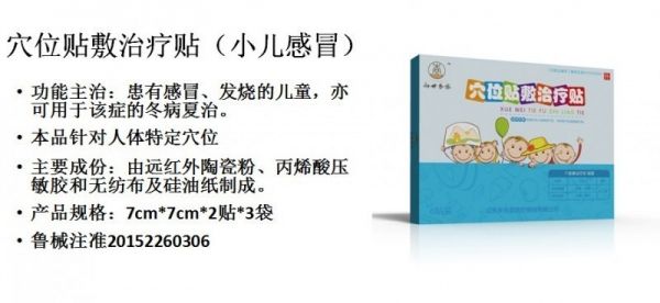 穴位贴敷治疗贴用于患有感冒、发烧的儿童,亦可用于该症的冬病夏治。本品针对人体特定穴位。