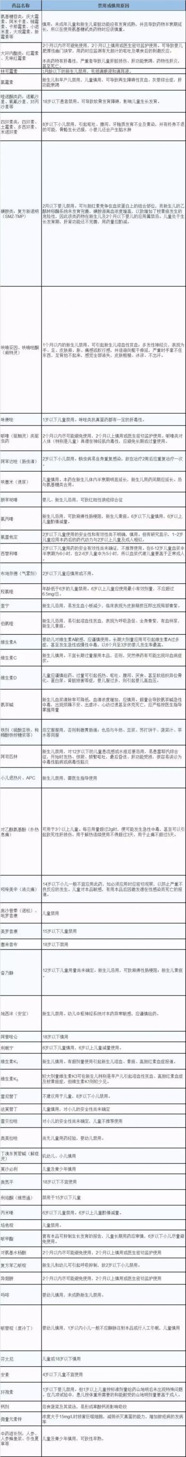 药店经理人也根据公开信息梳理了60种常见儿童禁用或慎用药物,供参考。(实际用药意见请遵循医生及药师建议)