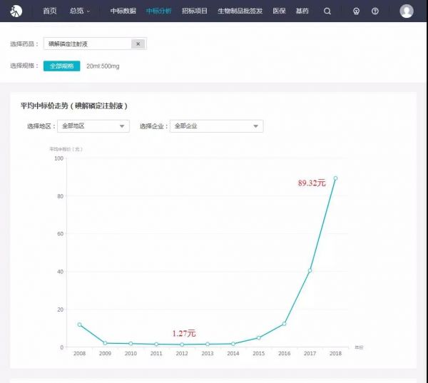 以解磷定为例,其价格变化曲线是这样的: