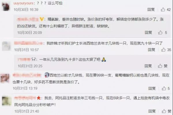 随后,评论区的回复,传出来更多的药品涨价信息,大多来自医疗工作者的反馈。