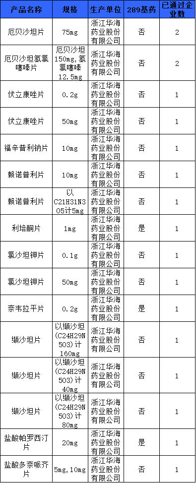 缬沙坦事件后,华海第一个通过一致性评价产品