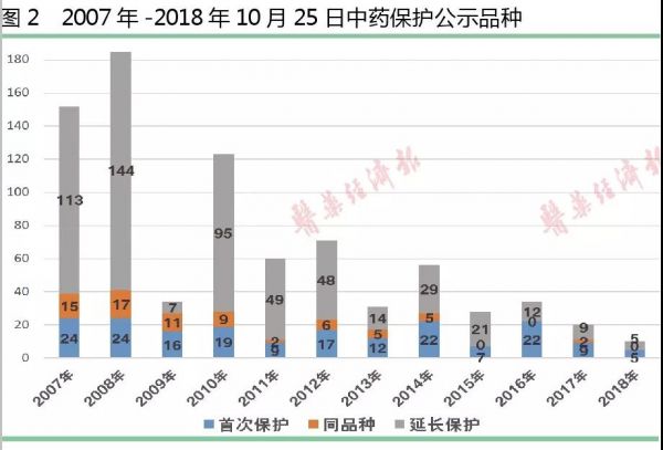 截止10月25日,2018年国家药监局共受理19个中药保护申请,其中8个为初次保护。