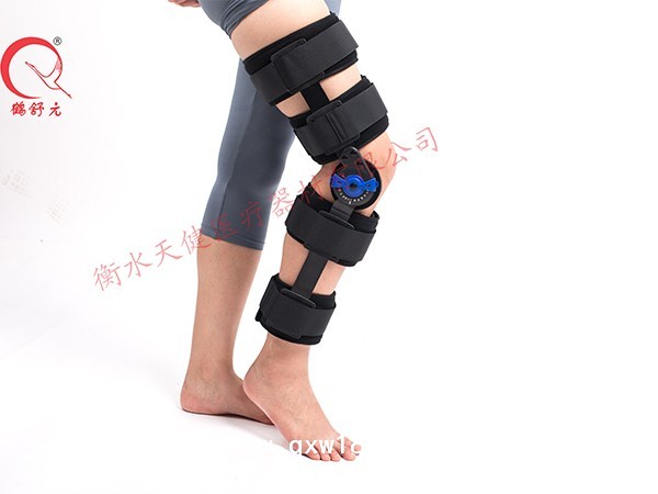 【产品用途】本产品主要适用于膝关节周围骨折、软组织损伤、髌骨骨折、脱位、半月板损伤、肌力、挛缩、关节炎、反屈膝、韧带损伤或修复固定。帮助膝关节恢复原有功能或康复期功能锻炼。本产品可在0-120度之间自由活动或限位固定,适应手术后的康复需求,韧带及十字韧带损伤等症。可提供支撑,固定,功能活动锻炼,负荷等作用。