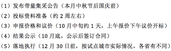 根据此前网传的国家药品带量采购会议纪要,时间节点安排为: