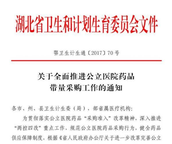 此外,通知要求在总结试点城市药品带量采购工作的基础上,各市州、部省属医疗机构全面推进带量釆购工作。