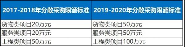 分散采购限额标准从50万元(含50万元)调整为100万元(含100万元)。