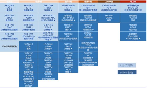 ①国内创新药绝对龙头企业,在研发与已获批创新药品种数量国内遥遥领先;②创新转型最彻底、创新成果最丰富,未来对仿制药业务依赖程度越来越低,是受仿制药降价趋势影响最小的标的;③业绩快速增长,19K、吡咯替尼、PD-1等重磅创新产品获批将强势推动公司进入新的增长周期。