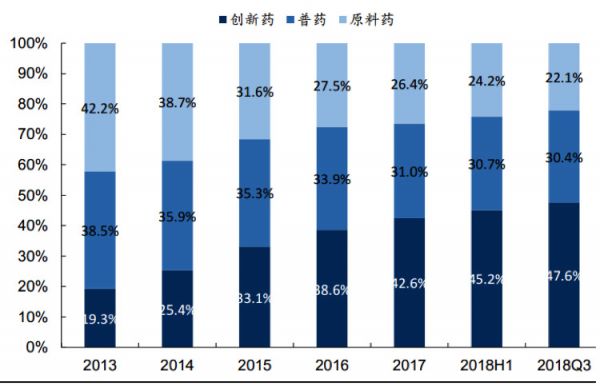 2018年前三季度,公司创新药业务实现销售收入75.43亿港元,同比增长62.1%。其中,心脑血管业务实现销售收入60亿港元,同比增长52.3%,肿瘤业务实现销售收入15.43亿港元,同比增长116.4%。创新药业务在公司收入占比进一步提升至47.6%。