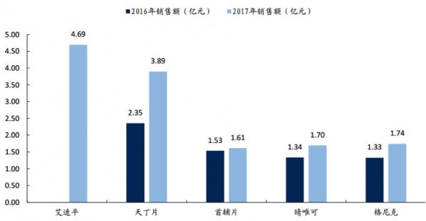 公司多个新产品在上市后销售额迅速过亿。其中,较为经典的如润众(恩替卡韦)2010年上市首年销售额1.45亿港币,2017年已达到31.68亿元;艾速平(艾司奥美拉唑钠)注射液于2016年上市,2017年销售额迅速达到4.69亿元;安罗替尼在上市首日创下1.3亿元的销售额。天丁(马来酸恩替卡韦)片、首辅(卡培他滨)片、晴唯可(注射用地西他滨)、格尼克(甲磺酸伊马替尼)均在近几年上市,目前正快速放量。