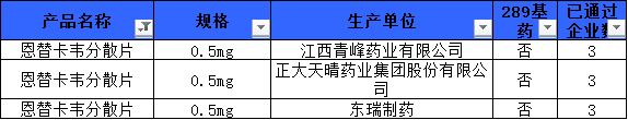 而恩替卡韦分散片是该品规国内第三家通过一致性评价的产品。