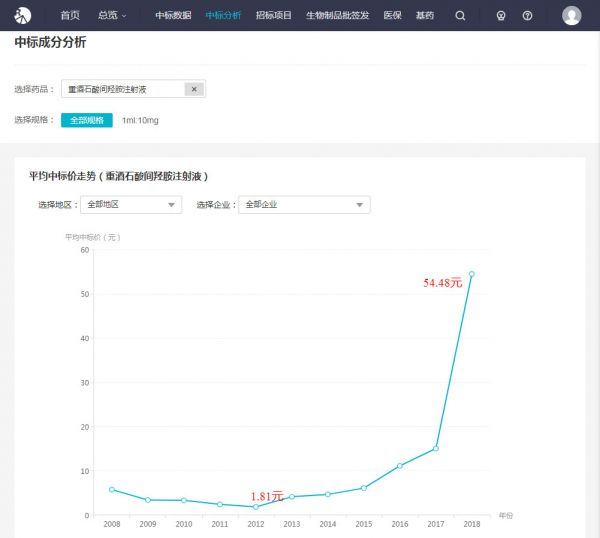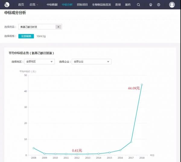 对照上表我们可以看到,碘解磷定的价格,也已经从1.94元/支涨到98/支,涨价幅度将近50倍。
