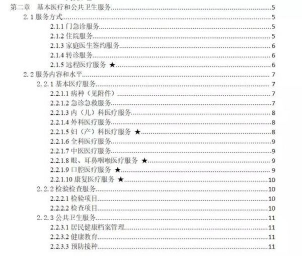 在服务内容和水平评定方面里,“★”全部标注在了基本医疗的各项服务里。