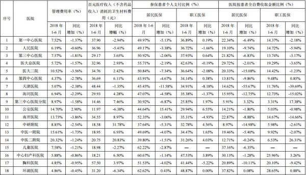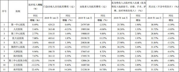 下附2018年1-6月天津市部分医疗机构控制医疗费用不合理增长工作有关指标