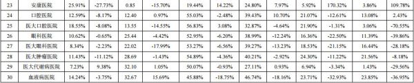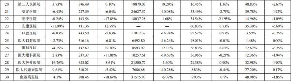 其中,有13家医院的药占比控制在30%以内,剩余17家医院的药占比高于30%。