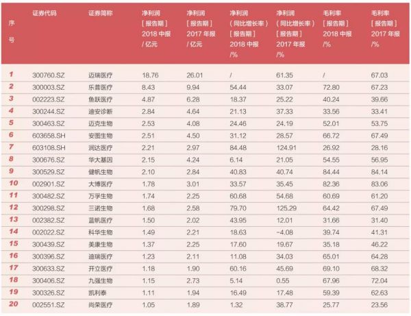 以下是梳理出的A股上市医疗器械公司按2018年上半年净利润的排名。