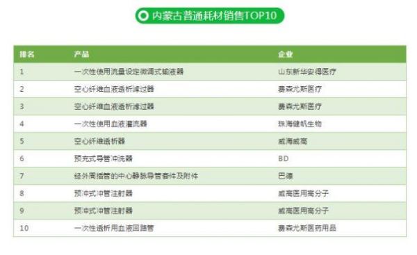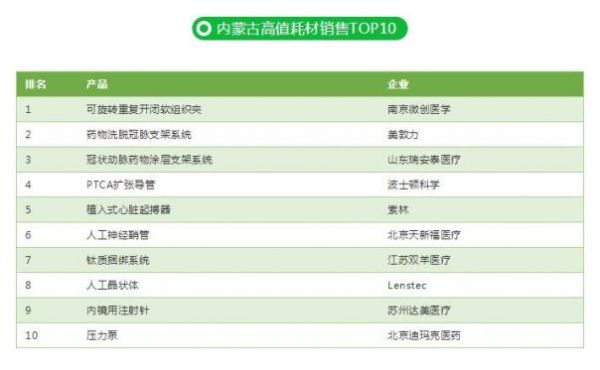 2018年10月,内蒙古自治区网上交易普通耗材产品数1502,排名前10位采购金额合计878.78万元,占普通耗材总采购金额的18%;网上交易高值耗材产品数4691,排名前10位采购金额合计862.41万元,占高值耗材总采购金额的9.23%。