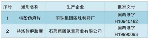 特酚伪麻片和特洛伪麻胶囊,即日停用、停产