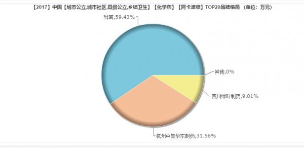 在市场格局方面,阿卡波糖有将近60%的市场,仍由原研企业拜耳所占据。但是,首家通过一致性评价的华东制药也不可小觑,目前已成功瓜分了超过30%的市场,随着其通过一致性评价后,将有望进一步扩大市场份额,逐步实现仿制药替代。