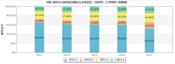 从盐酸克林霉素胶囊近年来在各级医院使用的情况看,其在基层医疗机构的市场占比越来越大小,而县级和城市公立医院的市场越来越大。可见,在限抗令的政策下,抗生素在基层滥用的情况逐步得到改善。