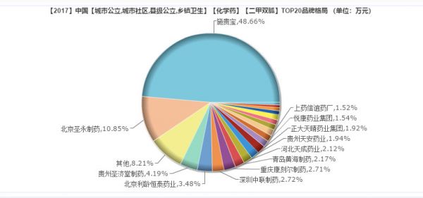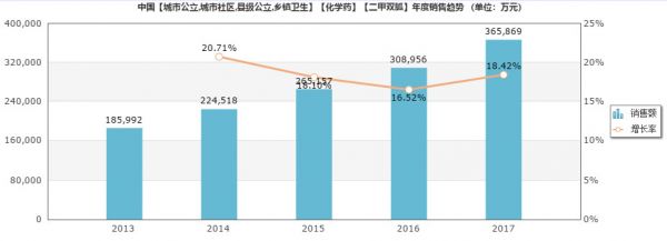 米内网数据库显示,2017年二甲双胍在全国公立医院销售额为36.59亿元,市场增长率达到18.42%,为国内口服降糖药通用名市场规模第二的药品。