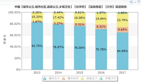 从氯吡格雷在各级医院使用的情况看,其在基层医疗机构的市场占比越来越大。可见,在分级诊疗的政策下,心血管疾病患者作为庞大的慢病群体,已经明显往基层下沉。