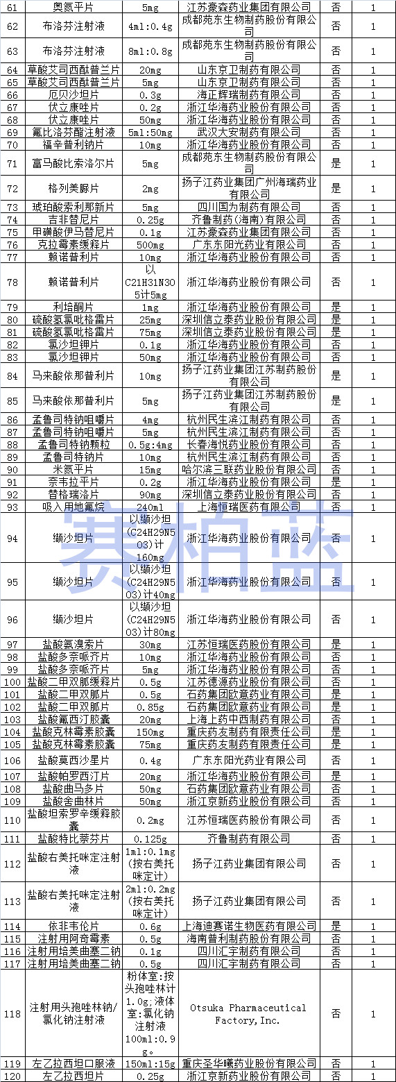 附:120个通过一致性评价的药品汇总(截至11月30日)