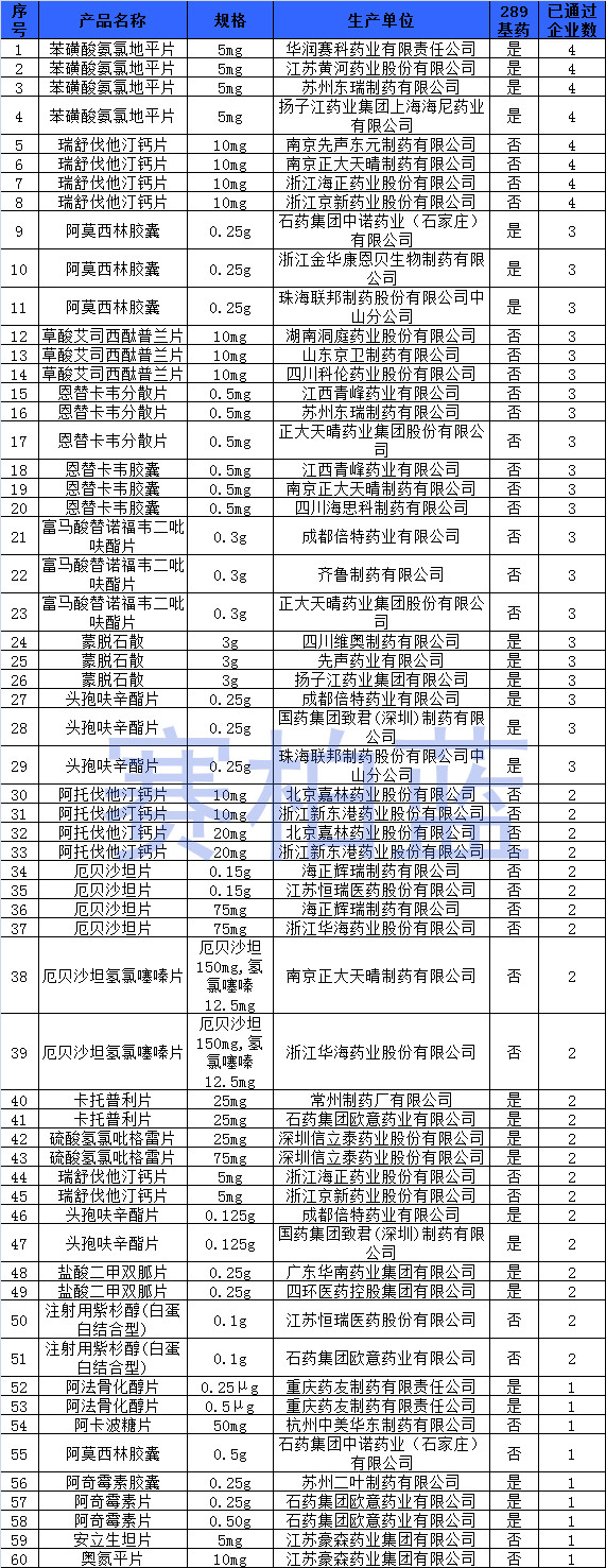 其中,瑞舒伐他汀钙片(10mg)、苯磺酸氨氯地平片(5mg),已有4家企业通过一致性评价。