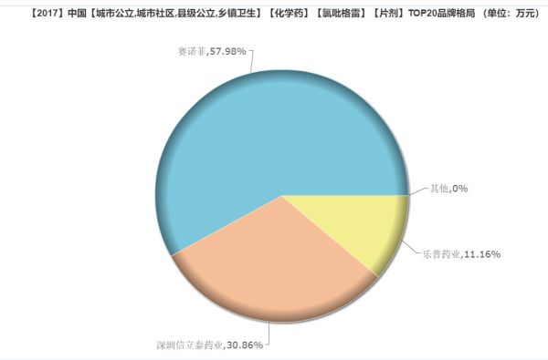 在市场格局方面,氯吡格雷片有将近60%的市场由原研企业赛诺菲所占据,但是,作为已通过一致性评价的信立泰、乐普药业也不可小觑,分别占据30.86%、11.16%的市场,预计未来对于原研药市场,将带来更大的冲击。