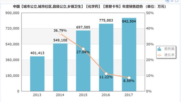 作为慢性乙型肝炎治疗的一线药物,恩替卡韦2017年市场销售总额高达84.25亿,虽然市场增速在逐年放缓,但是市场容量基数依然非常巨大。