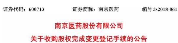 12月5日,南京医药发布《关于收购股权完成变更登记手续的公告》。收购南京华东医药有限责任公司100%股权,及南京金陵大药房有限责任公司30%股权之关联交易的事,定了。